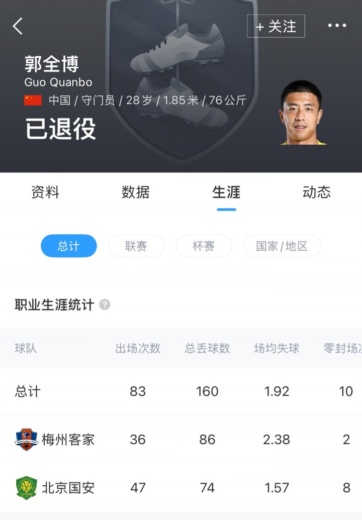 【相关】梅州博主透露28岁前国安门将郭全博退役,随后又称“可能假消息”